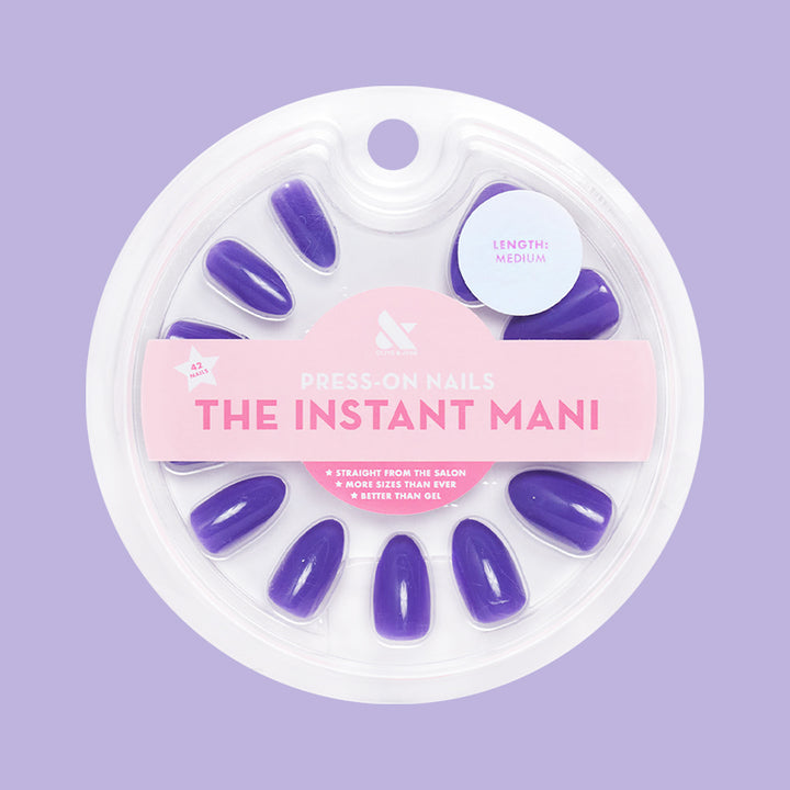 A fashion-forward regal deep purple in a medium almond.