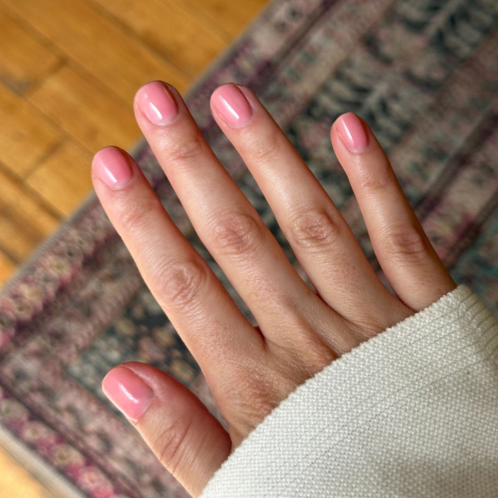 Butyl Acetate, Ethyl Acetate, Nitrocellulose, Adipic Acid/Neopentyl Glycol/Trimellitic Anhydride Copolymer, Acetyl Tributyl Citrate, Isopropyl Alcohol, Stearalkonium Bentonite, Acrylates Copolymer, Styrene/Acrylates Copolymer, Sucrose Acetate Isobutyrate, Silica Dimethyl Silylate, Dipropylene Glycol Dibenzoate, Octocrylene, Polyvinyl Butyral, Di-HEMA Trimethylhexyl Dicarbamate, Citric Acid, Titanium Dioxide (CI 77891), Dimethicone, n-Butyl Alcohol, Red 6 Lake (CI 15850), Trimethylsiloxysilicate, Yellow 5 Lake (CI 19140)