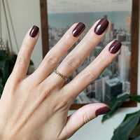Ethyl Acetate, Butyl Acetate, Nitrocellulose, Adipic Acid/Neopentyl Glycol/Trimellitic Anhydride Copolymer, Acetyl Tributyl Citrate, Isopropyl Alcohol, Stearalkonium Bentonite, Silica Dimethyl Silylate, Acrylates Copolymer, Styrene/Acrylates Copolymer, Sucrose Acetate Isobutyrate, Trimethyl Pentanyl Diisobutyrate, Octocrylene, Yellow 5 Lake (CI 19140), Titanium Dioxide (CI 77891), Polyvinyl Butyral, Red 7 Lake (CI 15850:1), Citric Acid, Carbon Black nano (CI 77266), Dimethicone, Trimethylsiloxysilicate, Diacetone Alcohol, Phosphoric Acid