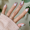Find your best fit. Push back cuticles and gently buff nails. Wipe with prep paid. Apply glue to the press-on nail and the natural nail. Slide the press-on nail onto the natural nail and hold for 30 seconds. Repeat with remaining nails.