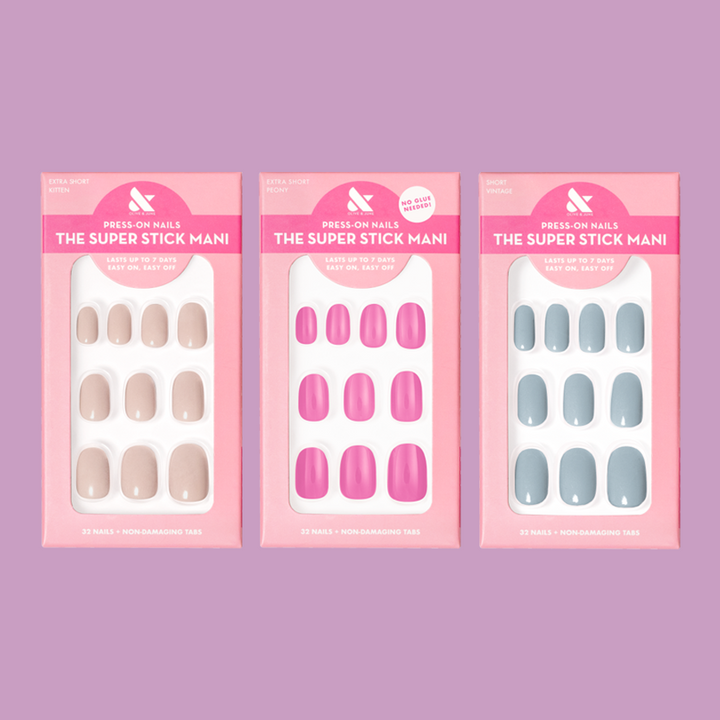 These are the manis of the moment. This set of bestselling tab press-ons with easy on, easy off tabs are in all of our most-loved solid colors.