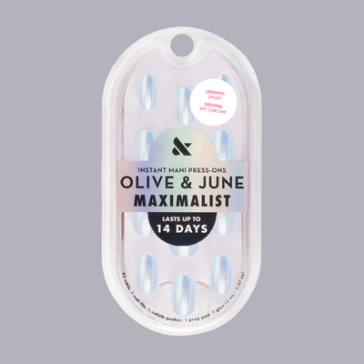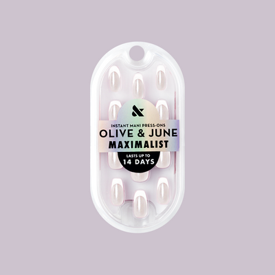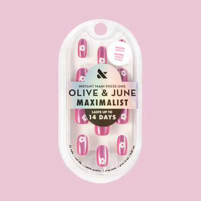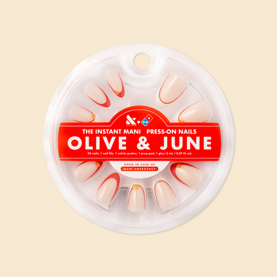 alt="olive and june + peachybbies New Drop! The most satisfying collab is here - SHOP NOW - picturd light blue press-on nails and pink and blue peachybbie slime container"