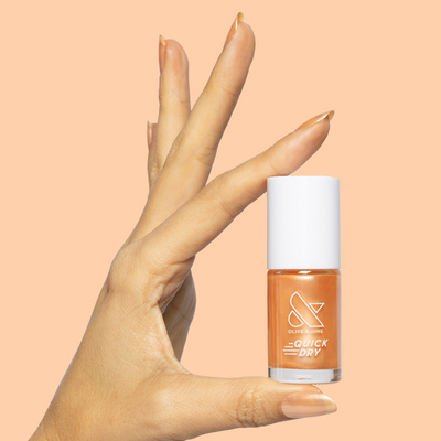 alt="olive and june + peachybbies New Drop! The most satisfying collab is here - SHOP NOW - picturd light blue press-on nails and pink and blue peachybbie slime container"