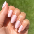 Opaque, glowy baby pink in a medium oval shape creates the perfect goes-with-everything mani.