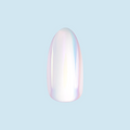 A shiny white iridescent chrome manicure in a long almond shape.
