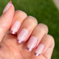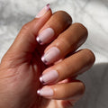 Find your best fit. Push back cuticles and gently buff nails. Wipe with prep paid. Apply glue to the press-on nail and the natural nail. Slide the press-on nail onto the natural nail and hold for 30 seconds. Repeat with remaining nails.