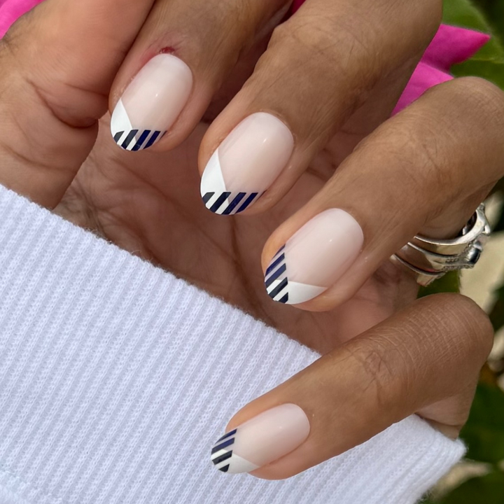 Limited Edition Nautical Split French - Press-On | Medium | Oval