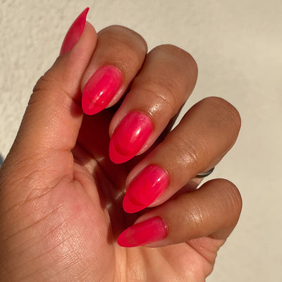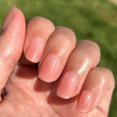 alt="olive and june + peachybbies New Drop! The most satisfying collab is here - SHOP NOW - picturd light blue press-on nails and pink and blue peachybbie slime container"