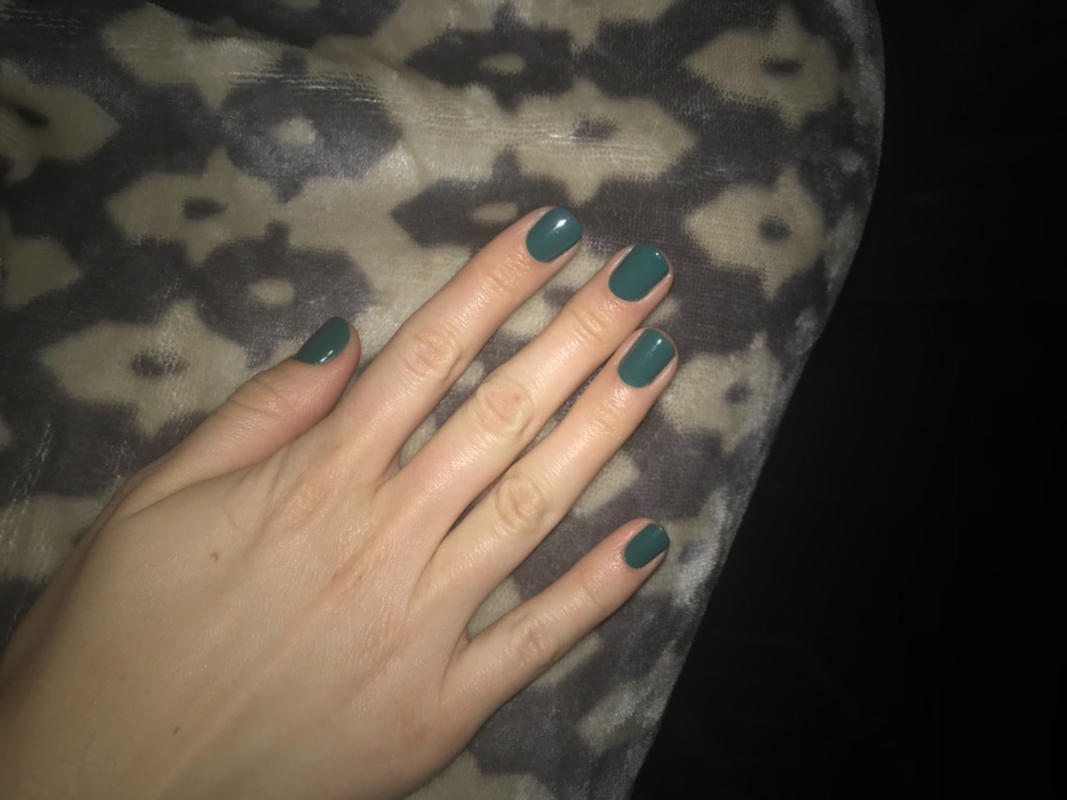 I am wearing my OBVI with my ring finger painted the green above. I put one coat of the OBVI over the green. It is so festive and beautiful for the holidays...It is staying on very good!!!!
