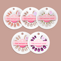 Press-on some autumnal newness. This set of 8 new press-ons feature some of our most-loved shapes and lengths in fall-favorite shades patterns, and finishes.