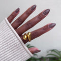 Paint the nail in 2-3 strokes per coat, allowing about 1 minute to dry between each coat. For the neatest polish application (especially with your non-dominant hand!), grab The Poppy to help stabilize your non-dominant hand.