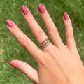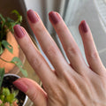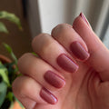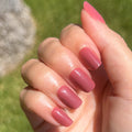 A cool-toned fig pink with a touch of lavender and grey in a short squoval shape.