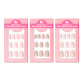 A trio of pinky-neutral solid tab press-ons for sweet manis.