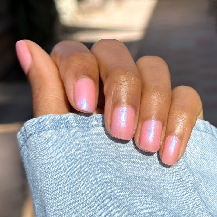 Butyl Acetate, Ethyl Acetate, Nitrocellulose, Adipic Acid/Neopentyl Glycol/Trimellitic Anhydride Copolymer, Acetyl Tributyl Citrate, Isopropyl Alcohol, Stearalkonium Bentonite, Acrylates Copolymer, Styrene/Acrylates Copolymer, Silica Dimethyl Silylate, Alumina, Sucrose Acetate Isobutyrate, Titanium Dioxide (CI 77891), Dipropylene Glycol Dibenzoate, Octocrylene, Polyvinyl Butyral, Di-HEMA Trimethylhexyl Dicarbamate, Citric Acid, Silica, Tin Oxide, Dimethicone, Yellow 5 Lake (CI 19140), n-Butyl Alcohol, Trimethylsiloxysilicate, Red 7 Lake (CI 15850:1), Black Oxide of Iron (CI 77499), Diacetone Alcohol, Phosphoric Acid