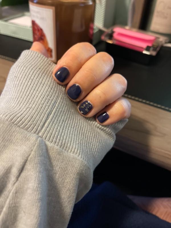 I love this color! I was never entirely comfortable wearing black or dark grey polish, even though I sported both those colors from time to time. This dark blue is PERFECT. It makes a beautifully bold statement that’s blue with the hint of purple which gives it more liveliness than the neutrals. It took 3 coats to achieve the deep rich effect, but that’s fine with me. My nails will be put to the test this week, so I hope it’s durable, too. I’ll be buying more of this color and I’ll certainly try more colors from Olive&June!