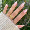 A neutral pink base with a layer of pearlescent shimmer for a mani that turns each nail into a  magical true pearl.