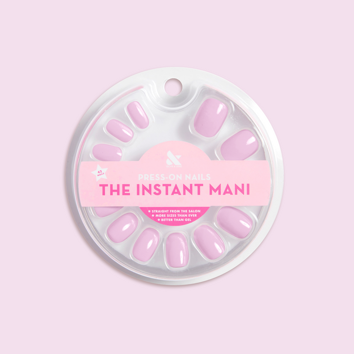 alt="olive and june + peachybbies New Drop! The most satisfying collab is here - SHOP NOW - picturd light blue press-on nails and pink and blue peachybbie slime container"