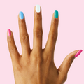 alt="olive and june + peachybbies New Drop! The most satisfying collab is here - SHOP NOW - picturd light blue press-on nails and pink and blue peachybbie slime container"