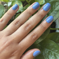 An easy breezy true blue mani in an extra extra short squoval shape.