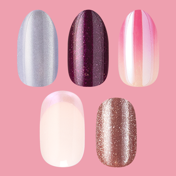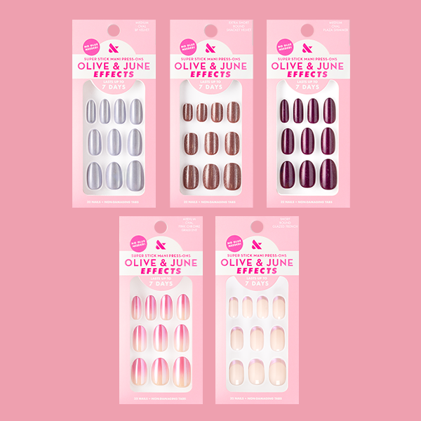 Press-on a new special effects mani in our bestselling easy on, easy off press-ons. This set features all 5 of the new effects manis in a variety of finishes.