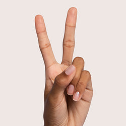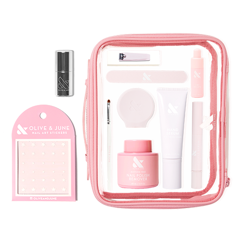 alt="olive and june + peachybbies New Drop! The most satisfying collab is here - SHOP NOW - picturd light blue press-on nails and pink and blue peachybbie slime container"